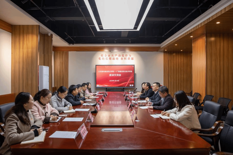 在学校廉洁教育基地召开两校交流座谈会。唐东升代表学校对山东城市建设职业学院孟凡辉一行的到访表示欢迎,简要介绍了首页的历史沿革、改革发展和办学成就等方面情况,并希望两校加强交流,互学互鉴,促进共同发展。