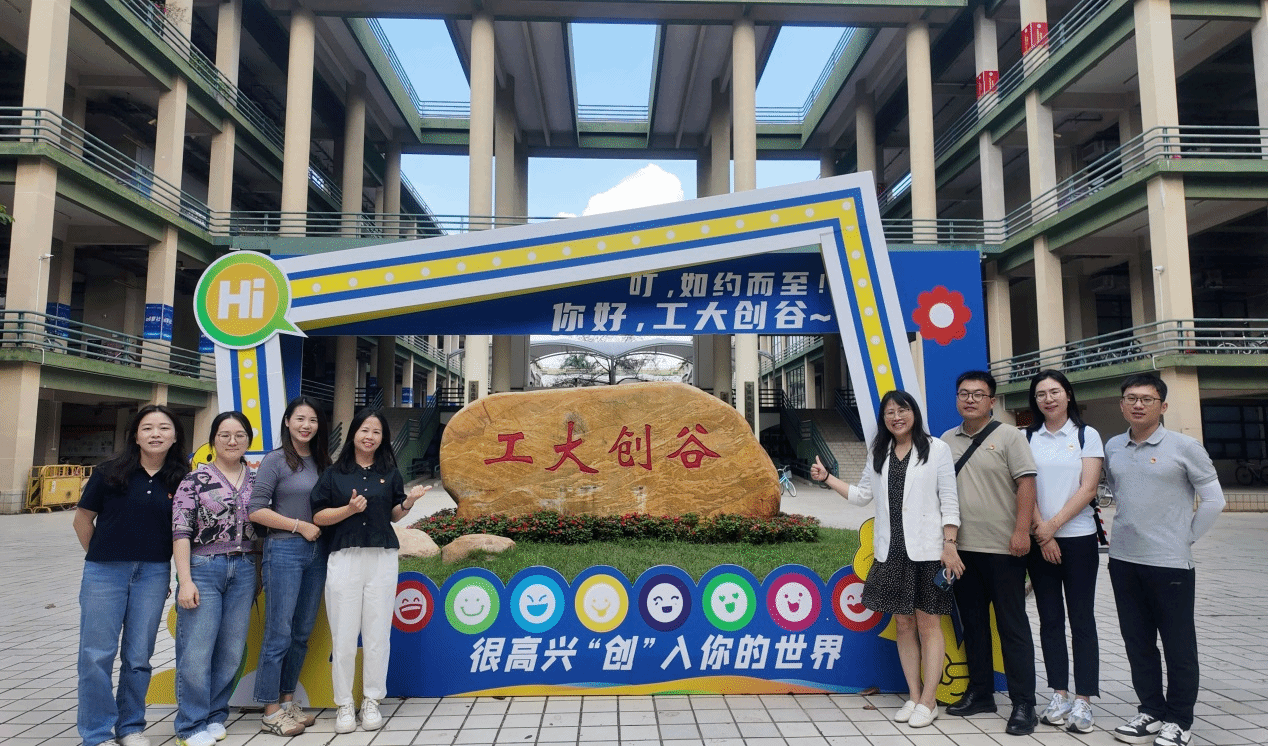 第二站,工作室成员来到了广东工业大学——“匠心创梦”创新创业辅导员工作室。该工作室负责人柯婷书记热情洋溢地介绍了其在创新创业教育与思想政治教育相结合方面的探索和实践,以及如何通过构建“双创+思政”的课程体系,培养学生的创新精神和实践能力。交流过程中,双方就工作室如何推进专创融合、校企合作进行了经验分享。随后,工作室成员参观了国家级创新创业教育实践基地——工大创谷,近距离体验了该校“学科交叉、产教融合、港澳协同、拔尖培育”的创新创业人才培养特色,感受了浓厚的创新创业文化氛围。
