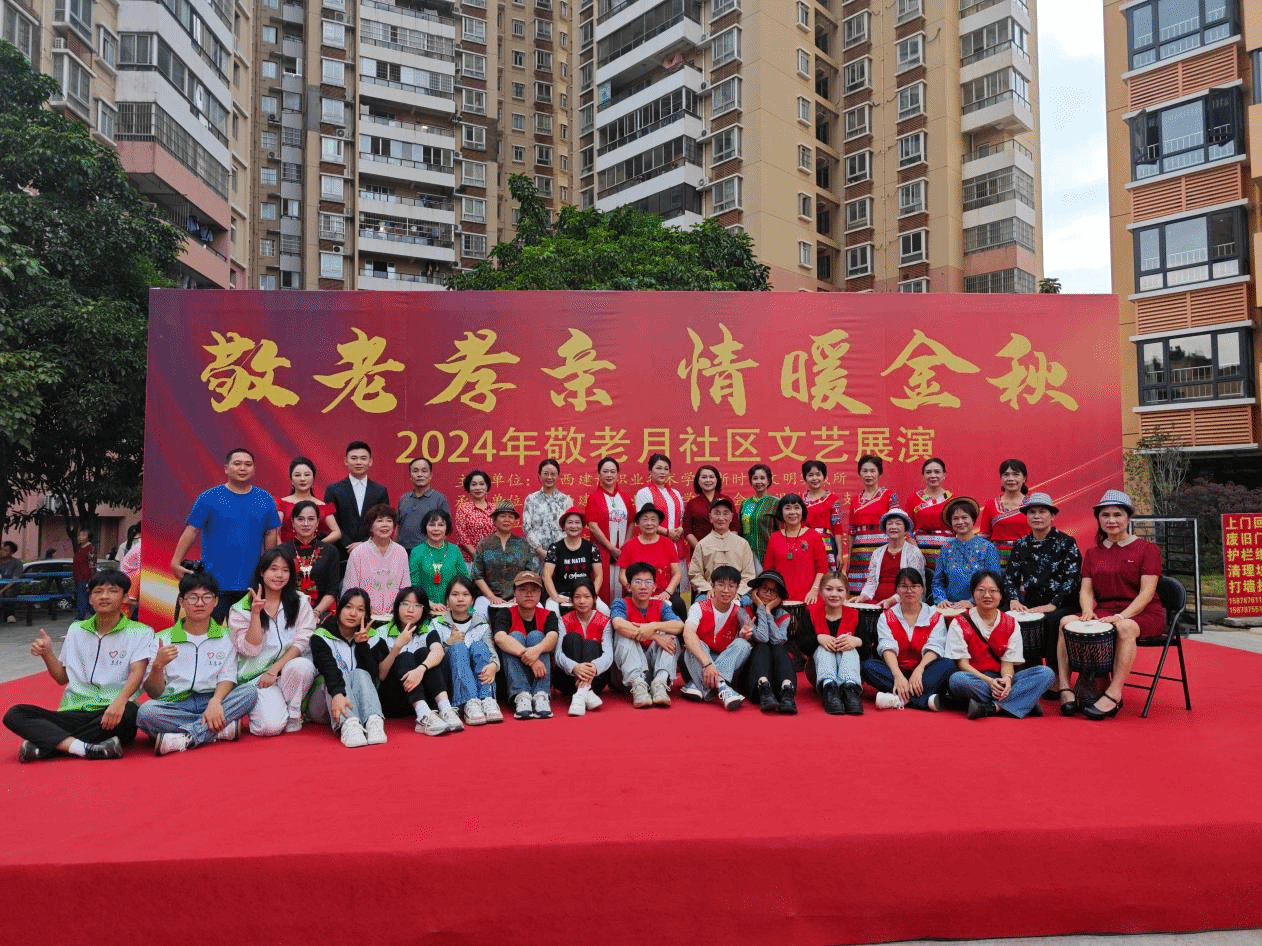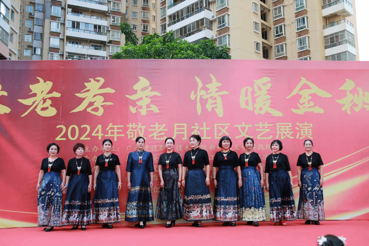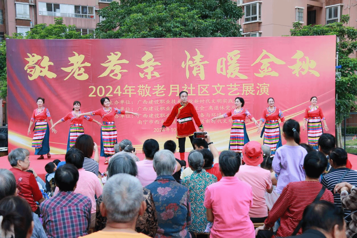广西建院10月29日讯(工会 黄军萍)2024年10月是我国第15个敬老月。为弘扬中华民族尊老敬老的传统美德,营造养老孝老敬老的社会氛围,学校新时代文明实践所、学校工会、离退休党总支携手秀灵北社区居委会、雷速在线网站与规划学院、设备与环境学院、农行南宁科技支行、爱尔眼科医院,于10月26日在建苑小区举办“敬老孝亲 情暖金秋”敬老月文艺展演。