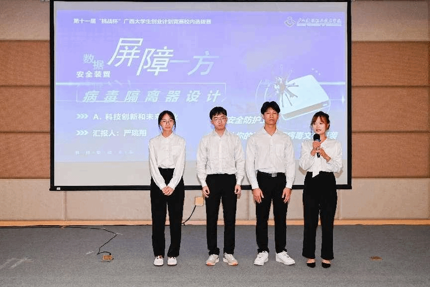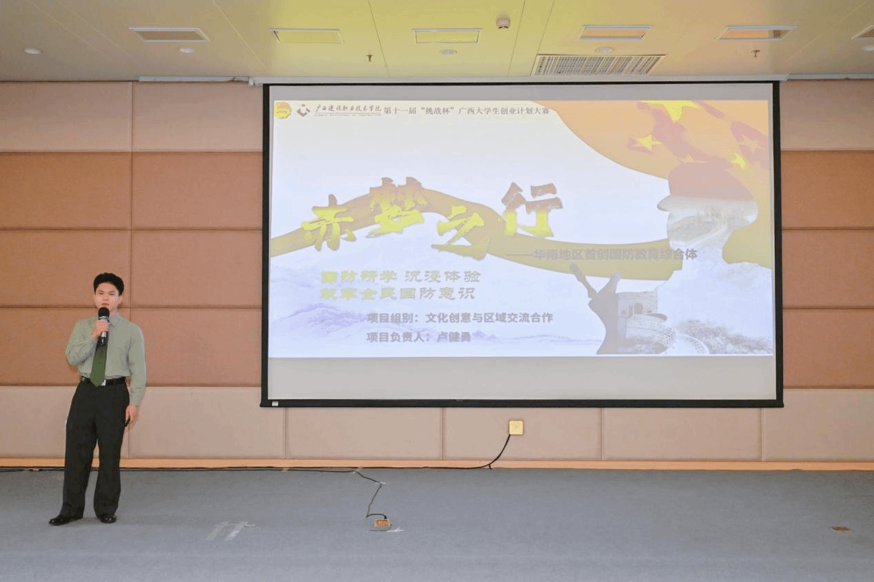 广西建院4月28日讯(文/团委 黎丹 图/青年新媒体中心 李彤)4月27日,首页在四教一楼报告厅举行第十一届“挑战杯”广西大学生创业计划竞赛校内选拔赛决赛。经过各二级学院初赛推荐、校级复赛评审,共有35个项目脱颖而出,进入决赛路演环节。