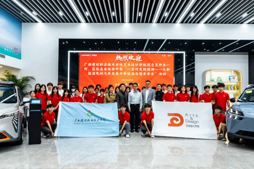 首页艺术设计学院团总支结合广西地域特色开展了“一堂行走的团课——从新能源电动汽车发展中洞察能源与国家安全”活动。此次活动紧扣时代脉搏,以2024年政府工作报告中“新三样”为切入点,组织学生深入新能源车企广汽埃安五象体验中心参观学习,就地开展《能源与国家安全》教育团课,引导同学们感受近年来国家安全工作取得的巨大成就,积极践行总体国家安全观,使关心国家安全、维护国家安全成为思想共识和行动自觉。