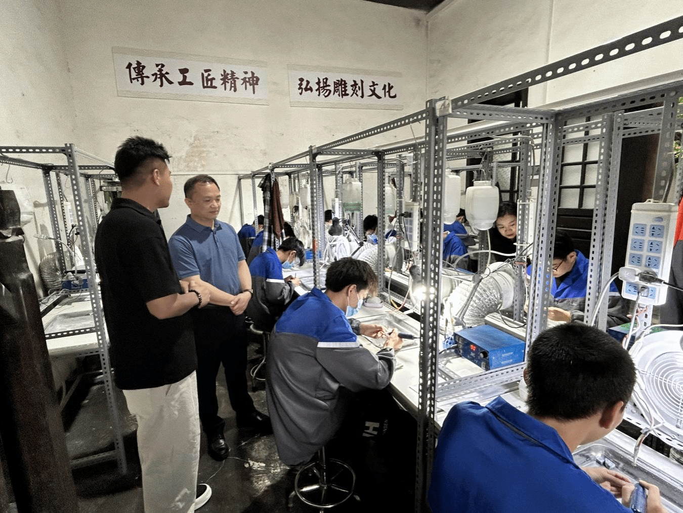 观摩学生雕刻实训课堂教学