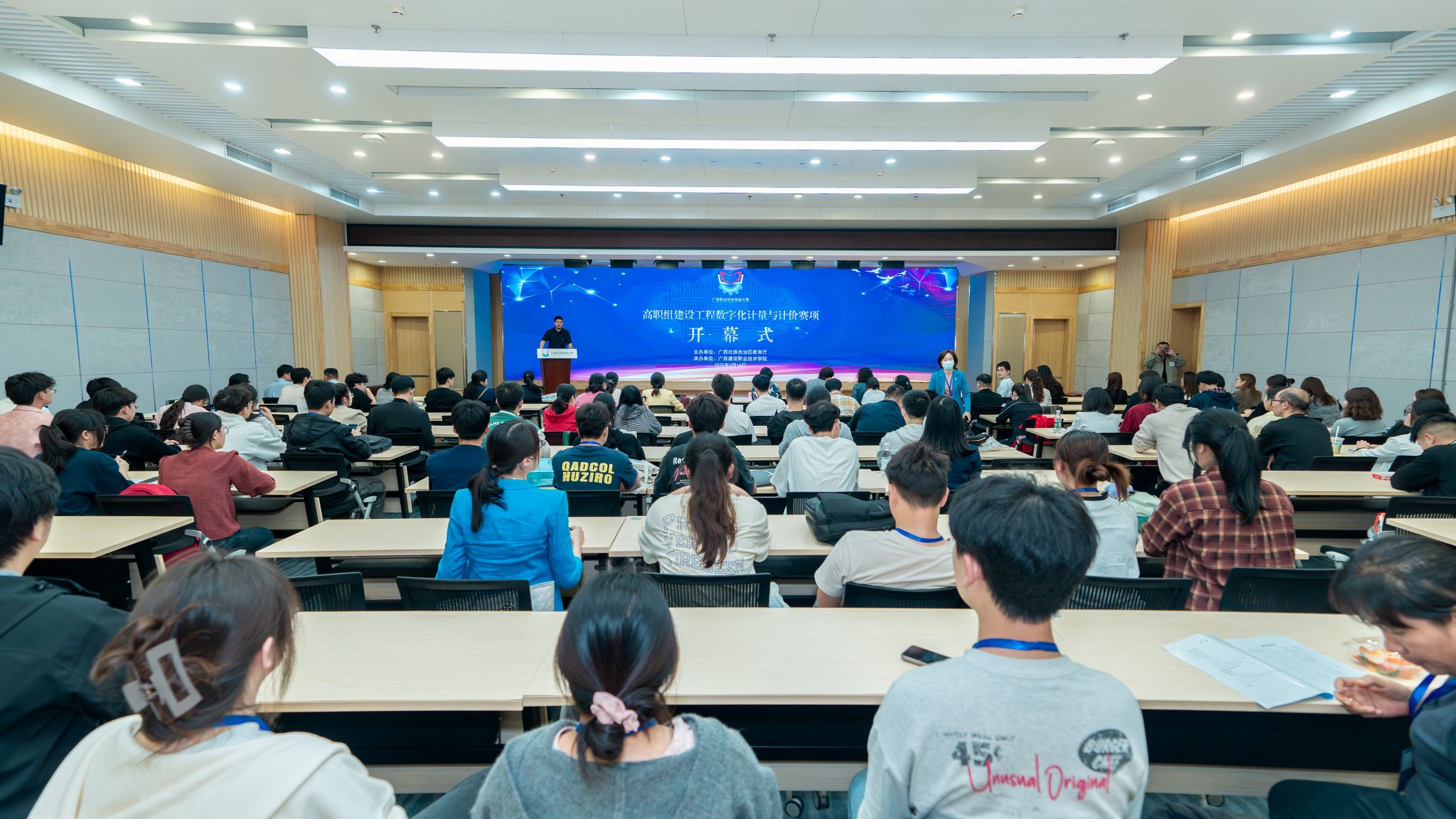 比赛现场,各参赛队伍精神饱满,沉着应战。选手们熟练操作数字化软件,快速完成工程量计算、造价分析和模型构建等任务,展现了扎实的专业技能和良好的职业素养。