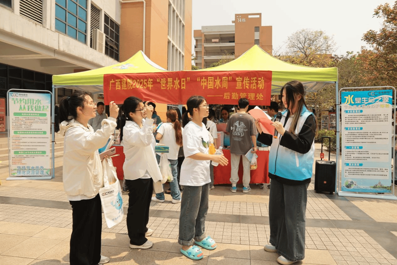 广西建院3月28日讯(后勤管理处 唐尚芳)为引导全校师生牢固树立依法治水意识,3月27日,首页后勤管理处(安全保卫处)在学校一食堂广场开展2025年“世界水日”“中国水周”节水宣传系列活动。学校副校长梁伟,后勤管理处领导出席活动。