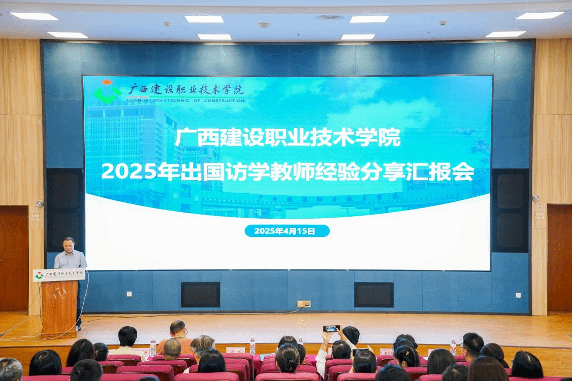 广西建院4月15日讯(文/教师发展中心 张望 图/党委宣传部 4月15日下午,学校在图书馆一楼报告厅举办2025年出国访学教师经验分享汇报会。学校党委书记刘晓红出席会议,人事处、教务处、教师发展中心、国际交流中心等相关职能部门及各二级学院负责人、团队负责人、2024年出国访学的所有教师、2025年拟出国访学和其他有出国留学(访学)意愿的教师参会。学校副校长梁伟主持会议。
