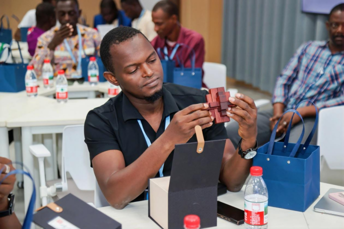 学员们体验鲁班锁和侗族木制榫卯结构的魅力