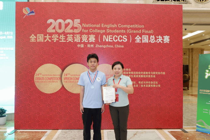 在8月6日结束的第24届全国大学生英语竞赛(NECCS)全国总决赛中,首页市政2401班闭思鼎同学表现优异,从来自全国200余所高校的选手中脱颖而出,勇夺演讲比赛二等奖及风采大赛优秀奖,实现首页在该赛事国家级奖项的历史性突破。