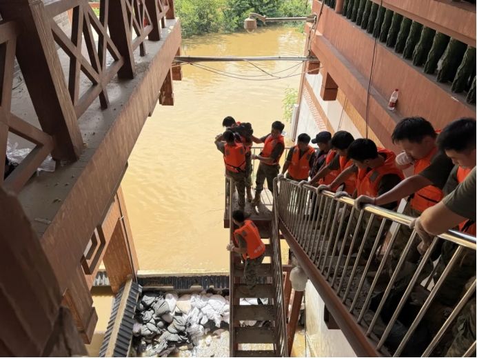 抢险现场,同学们与应急、消防等多支救援力量协同作战,采取沙石填压、沙袋围堵等方式连续奋战。面对堤坝外侧出现的塌陷隐患,他们积极配合应急部门,迅速在危险区域设置临时防护栏,有效防范次生灾害发生。由于持续奋战至深夜,许多同学全身湿透、双手磨出水泡,但仍坚守岗位,展现出“不怕苦、不怕累”的战斗精神,齐心协力,持续加固堤坝薄弱段,为后续彻底排除险情争取了宝贵时间。