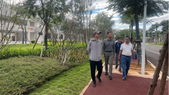 10月21日下午,在首页柏挺副校长的陪同下,蓝海浪赴首页武鸣校区进行实地考察,结合武鸣校区建设现状,从专业角度对校园景观规划提出了宝贵建议。