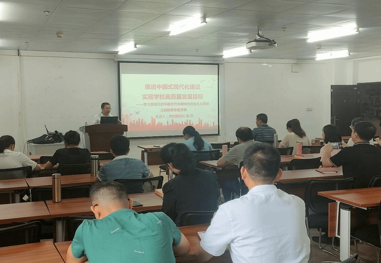 谢东副校长回顾了中国共产党的历史,并指出,正是因为中国共产党的成立,深刻改变了近代以后中华民族发展的方向和进程,深刻改变了中国人民和中华民族的前途和命运。谢东副校长从党的二十大报告出发,从五个方面刻画了中国式现代化发展的特征,揭示了中国式现代化与西方现代化发展的不同本质。结合首页“双高”建设、筹建本科层次职业学校等工作,他表示,希望各位党员老师在以后的工作中持续深化主题教育学习,牢牢把握“学思想、强党性、重实践、建新功”的总要求,准确把握主题教育的根本任务和具体目标,坚持“学思用贯通、知信行统一”,把个人发展融入到学校的发展之中,为学校发展助力;同时“借力”学校高速发展的大平台、大方向助力个人发展,力争成为践行中国式现代化的建设者和捍卫者。