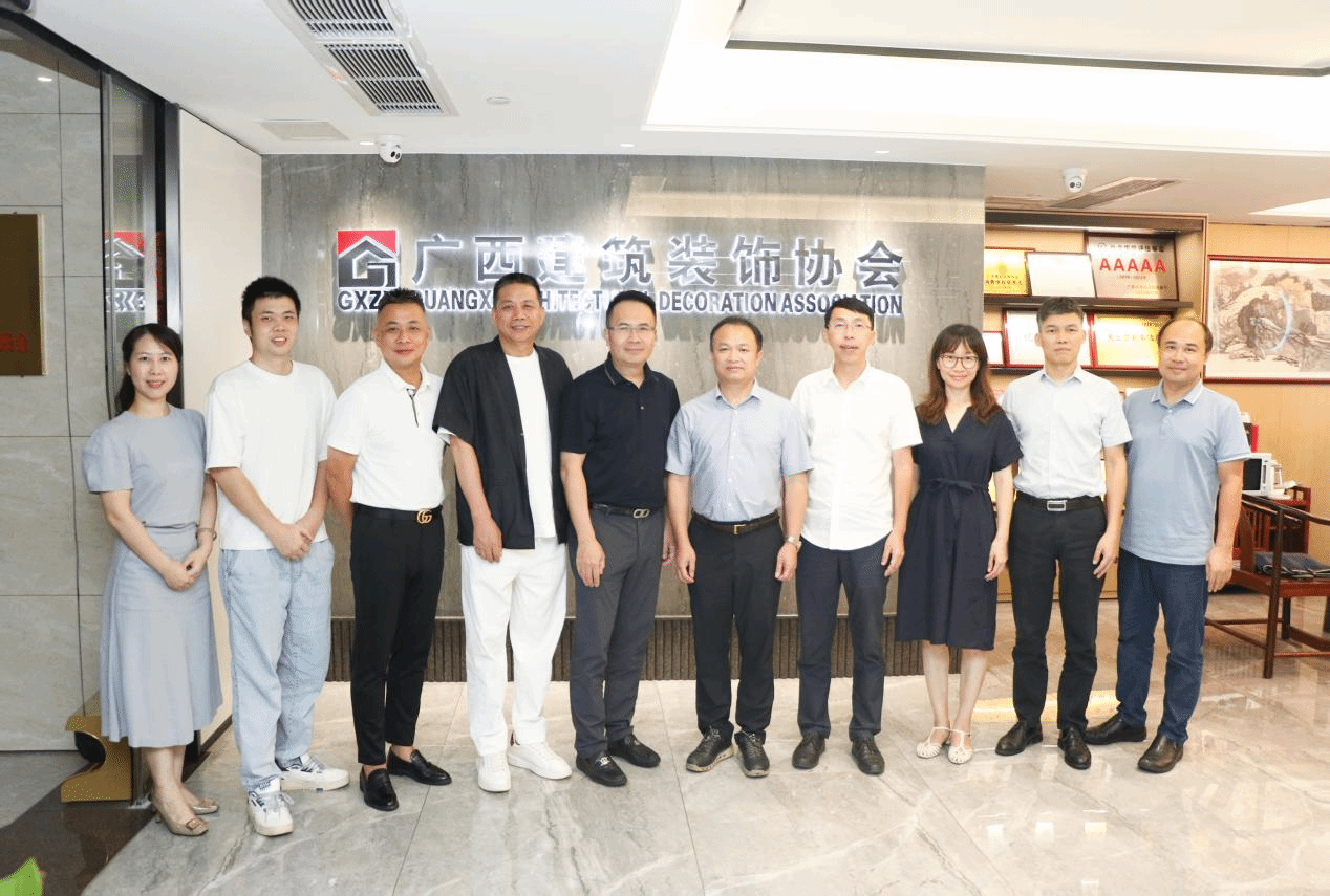 广西建院9月1日讯(艺术设计学院易楚豪)8月31日,学校副校长梁伟、艺术设计学院副院长(主持工作)陈菲菲、就业干事易楚豪一行3人到广西雷速在线网站装饰协会秘书处开展交流座谈。协会会长庞耀国、广西雷速在线网站装饰龙头企业代表广西华辉装饰集团董事长杨景忠、广西华蓝装饰董事长朱建宇、广西新美格建设总经理李震海、广西呈美装饰副总经理陈良勇,以及协会相关工作人员出席本次会议。