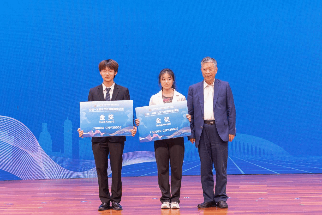 广西住房和城乡建设厅党组副书记、副厅长、一级巡视员汪夏明,柬埔寨国家技术培训学院校长约克·索伊为获优秀奖的参赛选手颁奖