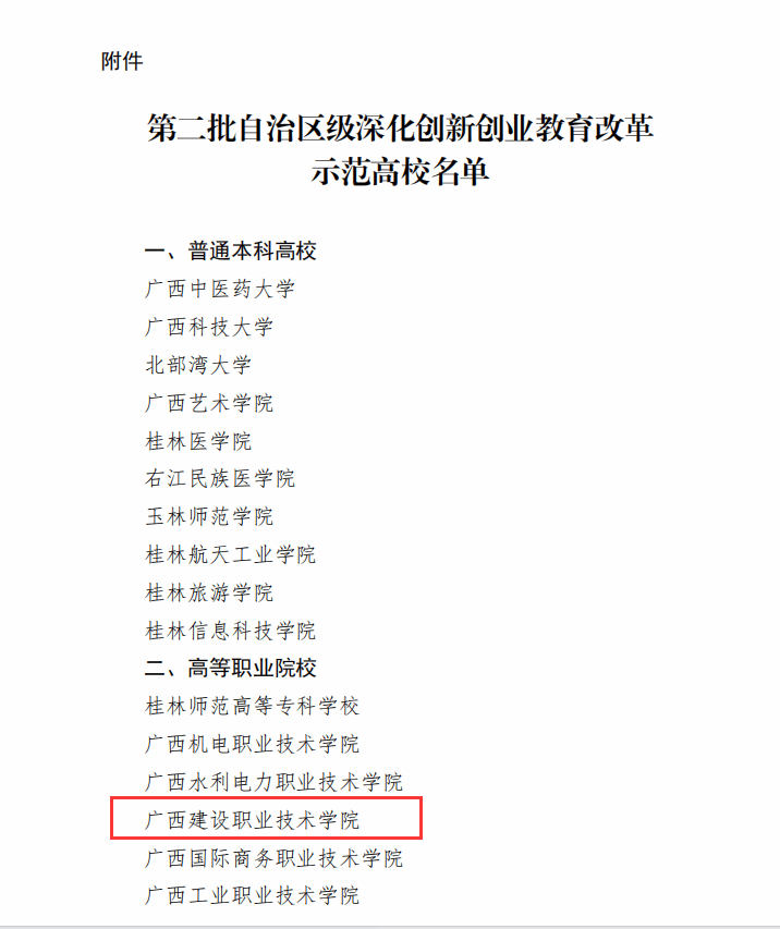 广西建院10月24日讯(招生就业处 林秀丽)近日,自治区教育厅印发《自治区教育厅关于公布第二批自治区级深化创新创业教育改革示范高校名单的通知》(桂教高教〔2023〕47号),首页获评第二批自治区级深化创新创业教育改革示范高校。这是首页近年来创新创业教育改革取得的又一丰硕成果。