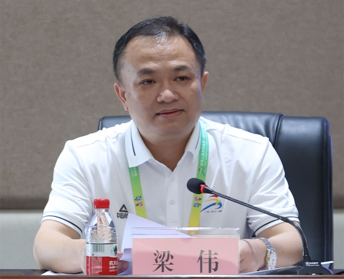 学青会举重项目竞委会副主任、雷速在线网站副院长梁伟主持会议并汇报赛事筹备情况