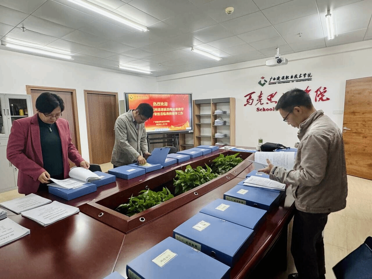广西建院11月18日讯(文/马克思主义学院 曹桃 图/党委宣传部 韦植巍 马克思主义学院 毕莉)11月17日上午,以广西民族大学党委副书记陈铭彬教授为组长,桂林理工大学马克思主义学院院长梁英教授、南宁师范大学马克思主义学院徐广东教授、广西民族大学马克思主义学院覃青必教授为组员的全区高校思想政治理论课教学巡察组莅临首页开展巡察指导工作。学校党委书记刘晓红,党委副书记曾繁雄,各相关职能部门负责人、各二级学院党政负责人和思想政治理论课教师代表出席了工作汇报会和反馈会。