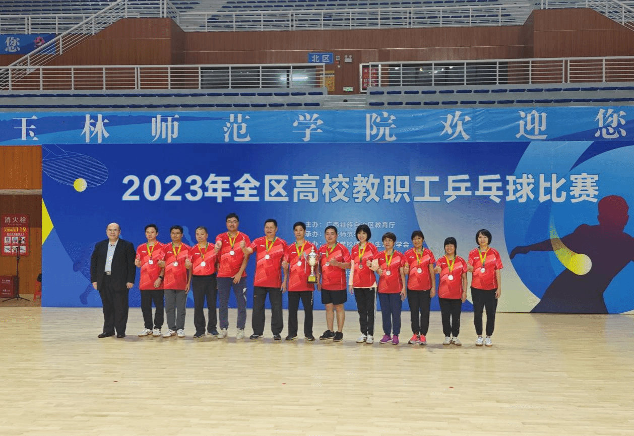 广西建院12月12日讯(工会 陆康)12月5日—8日,由广西壮族自治区教育厅主办的2023年全区高校教职工乒乓球比赛在玉林师范学院举行,来自全区38所高校的代表队参加角逐。首页代表队派出钟智明、何炎、黄剑华、莫壮国、俸洪斌、朱金华、吴青云、莫克、彭丹梅、黄冬英、陶敏华、韦怀波12名队员参加比赛,获得第二名的好成绩。