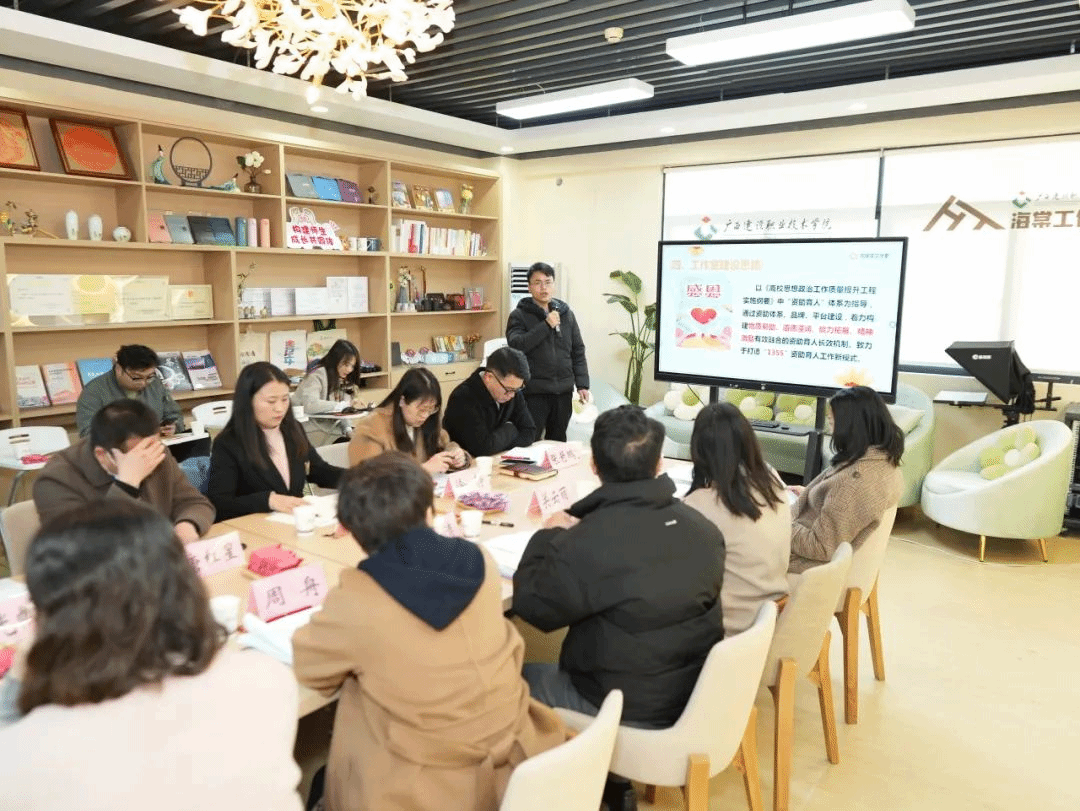 广西建院3月1日讯(党委学生工作部 文/孙文 图/宋景弘)2月28日,首页第十期辅导员沙龙在学校海棠工作室举行。学校副校长伍耿清,党委学生工作部部长周舟与15位辅导员面对面,围绕“辅导员工作室多维矩阵探索”主题,总结经验,交流研讨下一步工作思路。