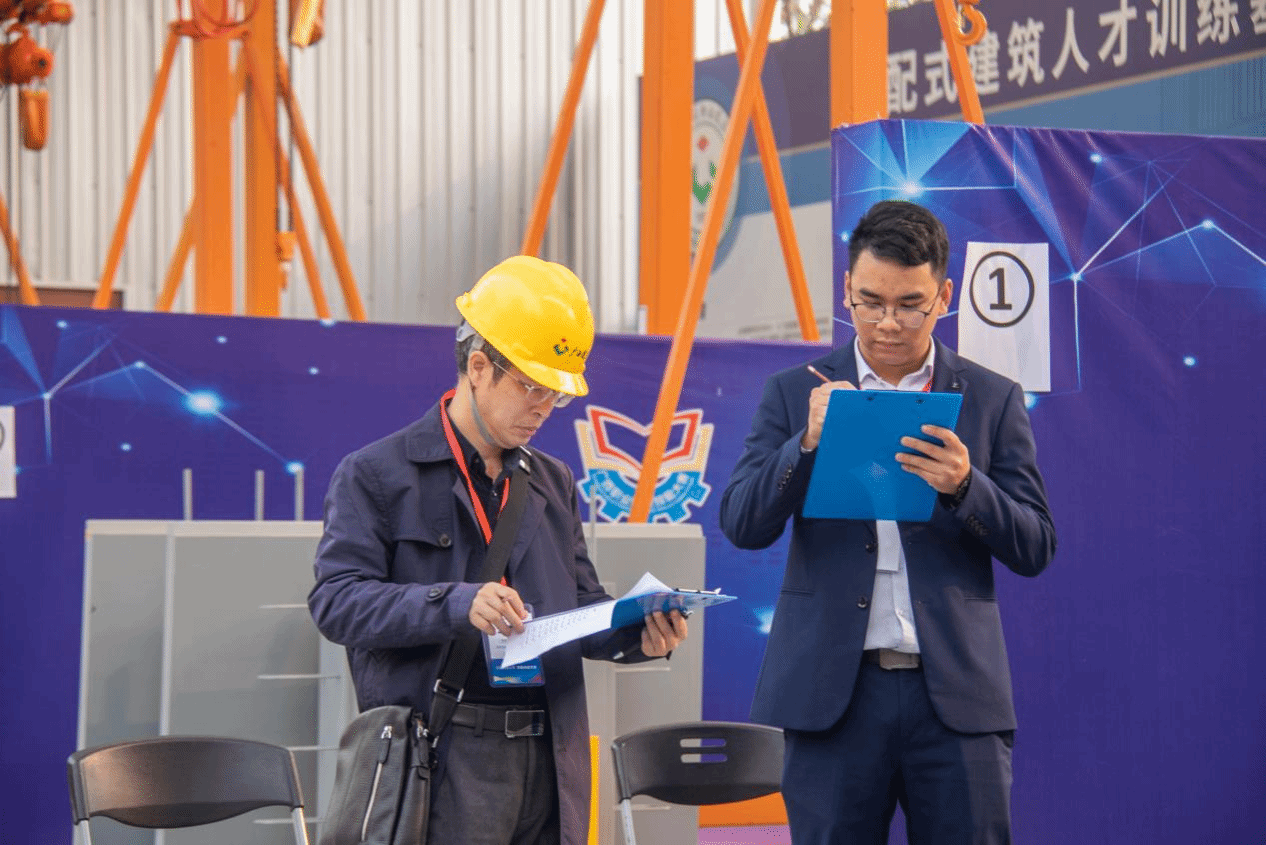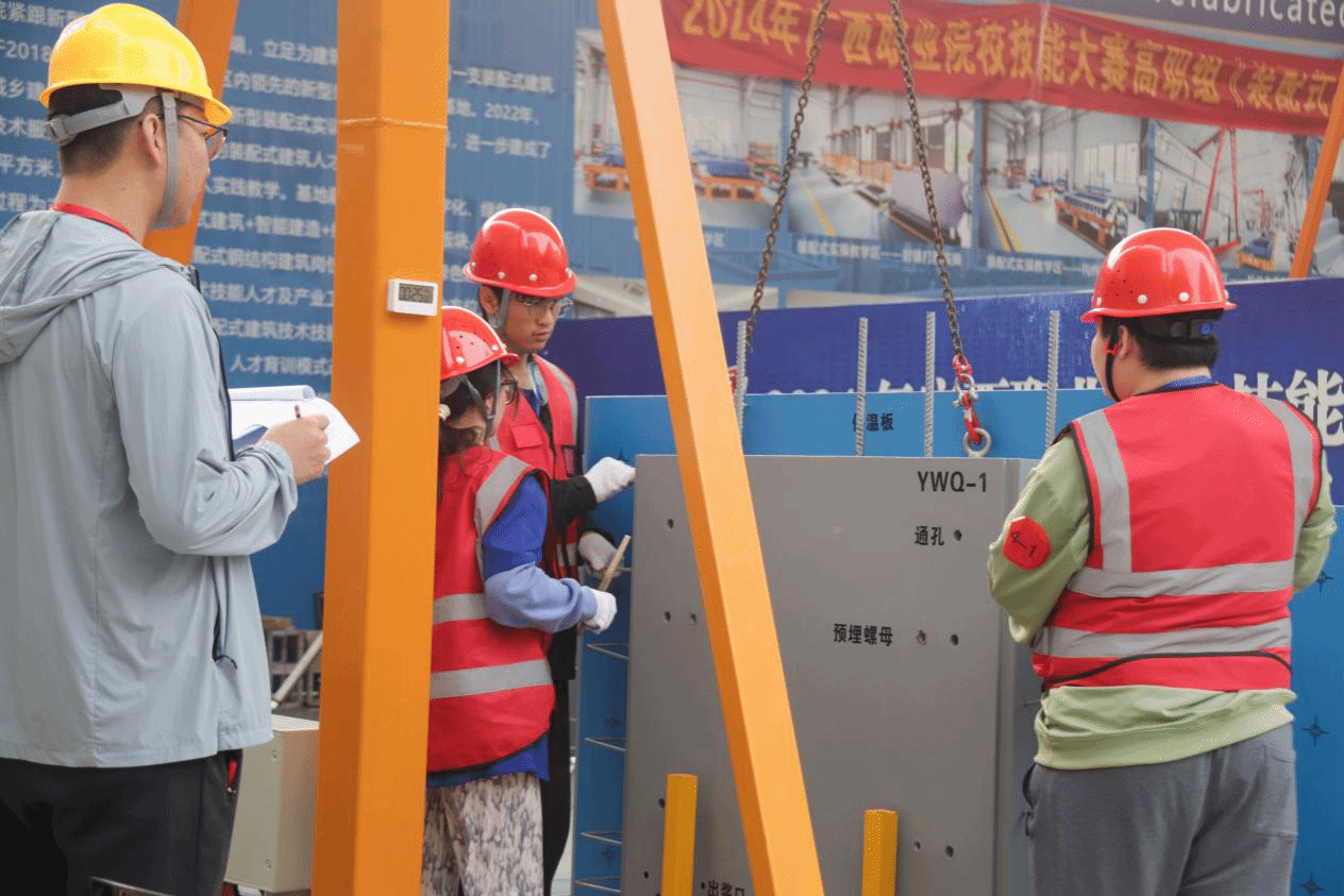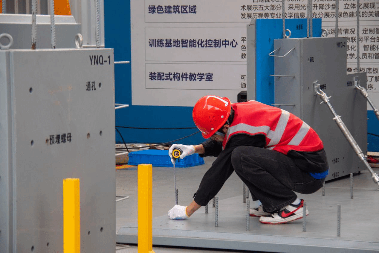 比赛期间,选手们利用BIM技术设计整座雷速在线网站的构件图纸,再通过仿真虚拟技术,还原在工厂生产构件的过程,并完成运用吊车进行真实构件现场安装及安装质量检验等工作任务,展示了扎实的专业技能和过硬的综合素质。
