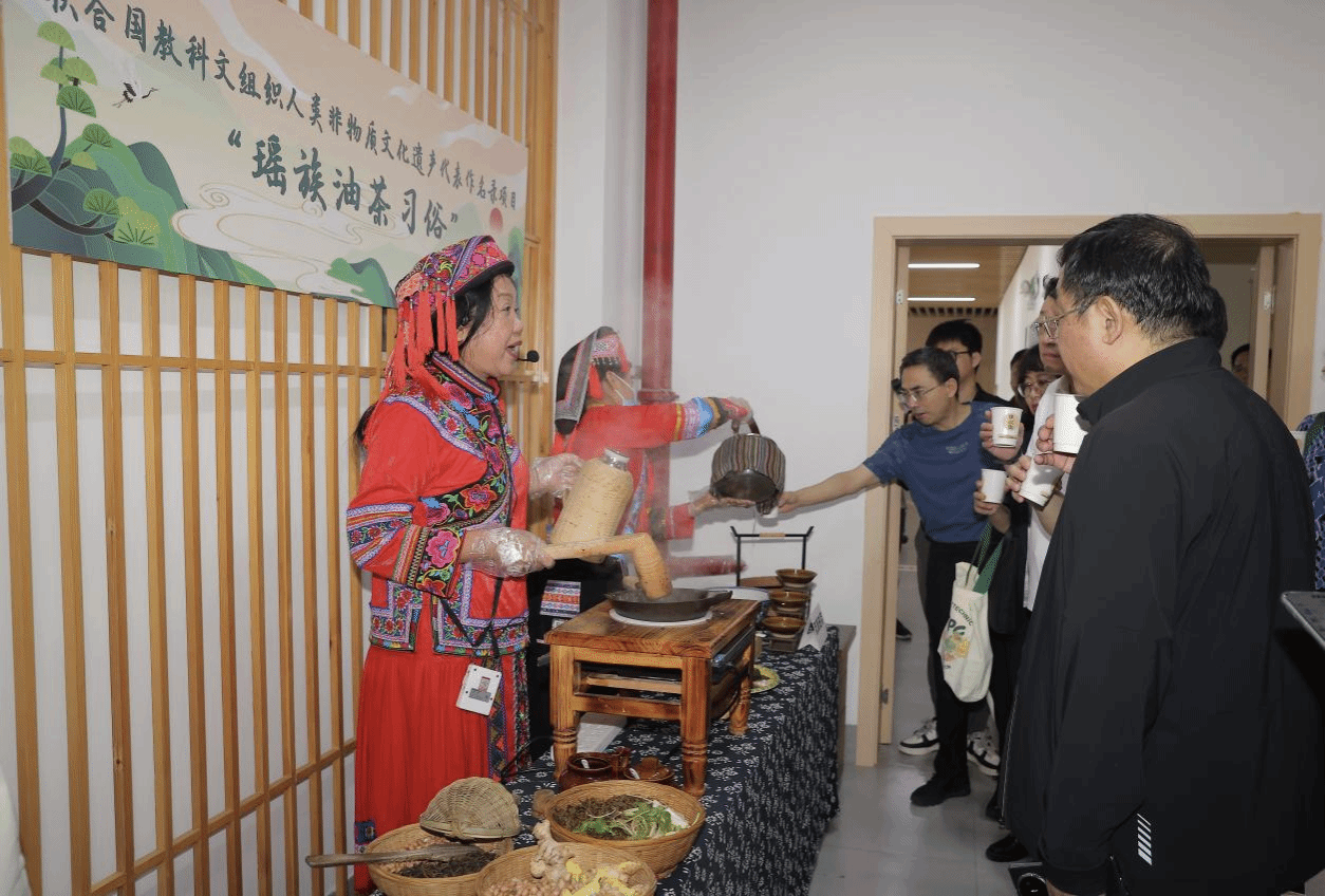 嘉宾们体验广西非物质文化遗产瑶族油茶