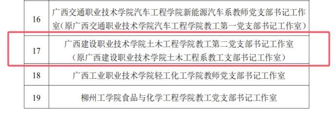 广西建院11月18日讯(党委组织部 谢刚)近日,自治区党委教育工委下发《关于公布首批新时代广西高校“双带头人”教师党支部书记工作室培育创建单位验收通过名单的通知》,首页土木工程学院教工第二党支部书记工作室顺利通过验收。