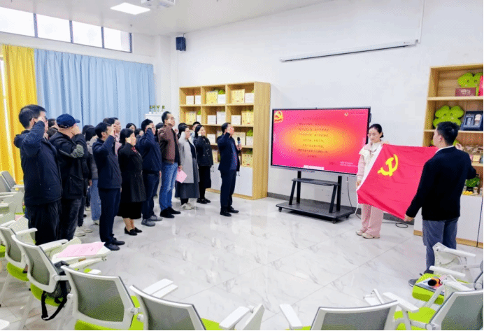 在“庆祝政治生日 回望初心使命”环节中,党支部为党员同志们颁发贺卡,共同庆祝政治生日,并重温入党誓词。
