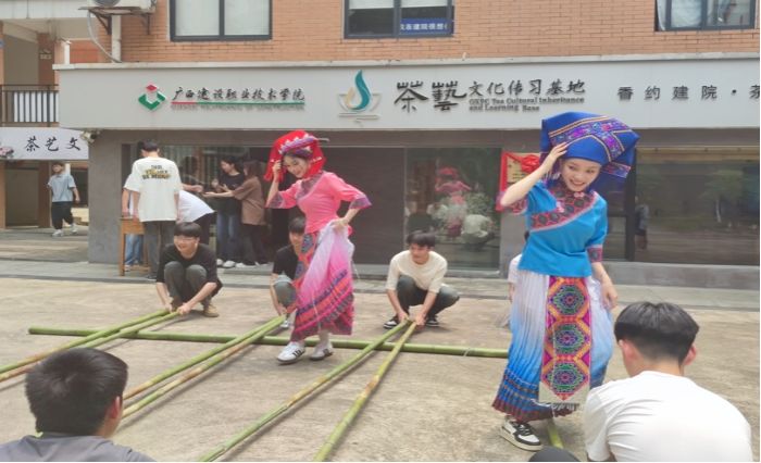 茶艺基地充分发挥重要时间节点的心理育人功能,在传统节日开展“我们的节日”特色活动,增强学生的认同感和自豪感,铸牢中华民族共同体意识。在广西“三月三”,通过赶歌圩、传绣球、打扁担、尝五色糯米、制艾叶糍粑场景体验,加深了同学们对壮族文化的了解和认同,同时增进了解和信任,建立紧密和谐的人际关系;在中秋节,师生们围桌而坐,赏明月、品月饼,弘扬和谐、团圆、互敬的价值观念,增强情感联结与归属感、满足心理需求,缓解压力;在每一个节气,开展“梦想朗读者”专题诵读,推出“《梦想朗读者》之二十四节气”系列48期,用真挚动人的朗诵,提醒师生顺应天时、敬畏自然、提升生活品质与审美情趣。
