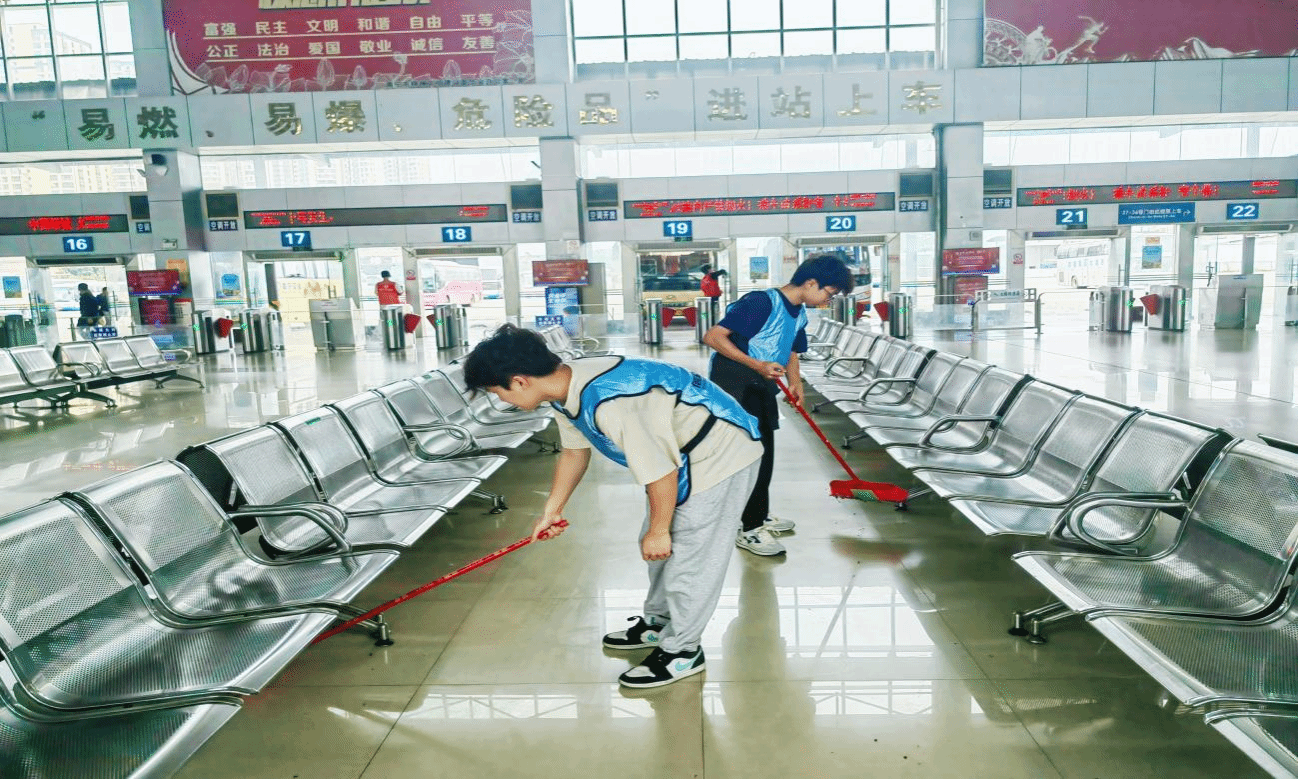 完成周边清扫工作后,同学们进入客运站内部,对站内的卫生进行打扫。他们仔细擦拭座椅、窗户、栏杆等设施,让客运站内部面貌焕然一新。“擦拭的过程需要细心和耐心,但当我看到被擦拭得一尘不染的设施时,内心充满了成就感。”网络2304班的黄承圳同学分享了参加本次活动的收获。