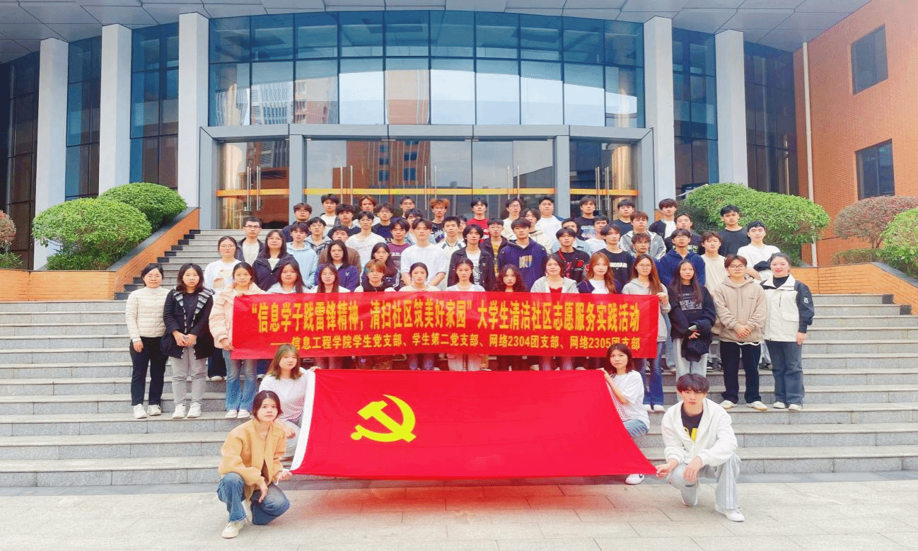 为传承和弘扬雷锋精神,信息工程学院学生党支部、学生第二党支部联合网络2304班团支部、网络2305班团支部学生,在朱秋燕老师、黄美清老师的带领下,开展了“信息学子践雷锋精神,清扫社区筑美好家园”志愿服务活动,为建设美丽和谐社区贡献了青春力量。