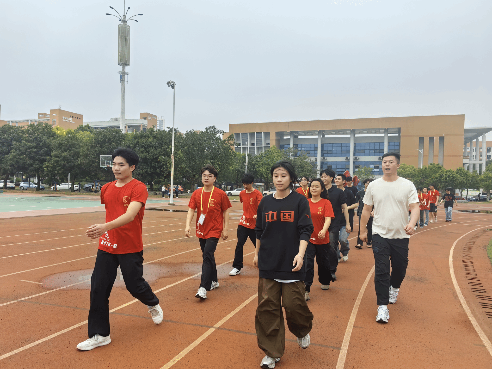 胡老师带同学们热身