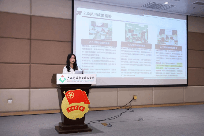 “红旗团支部”建管2304班团支部代表韦富成同学在展示评比活动现场