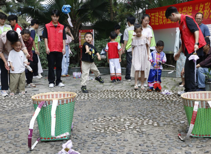 室外的“邻里运动会”同样热闹非凡。背篓绣球、踢毽子挑战、投壶等民族传统体育项目吸引了众多居民参与。一位社区居民感慨道:“这些活动既有趣又有意义,不仅让我们感受到不同民族文化的魅力,也让邻里关系更加紧密!”