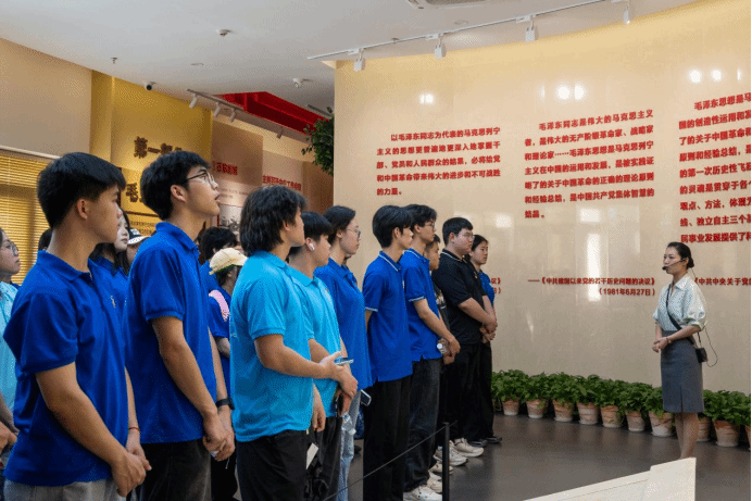 祭扫活动结束后,师生们前往毛主席接见广西各族人民纪念馆参观学习。在“南宁会议”展区,讲解员详细介绍了1958年毛主席主持召开的南宁会议,以及会议对广西经济发展的战略指导。同学们驻足观看毛主席当年审阅的广西发展规划文件,深刻理解了“从群众中来,到群众中去”的工作方法。在“关怀壮乡建设”板块,陈列的农具、粮票等实物,展现了毛主席对广西农业、工业发展的长远布局。“我们今天的幸福生活,离不开老一辈革命家的高瞻远瞩。”团员吴毅京在参观后忍不住感叹道。