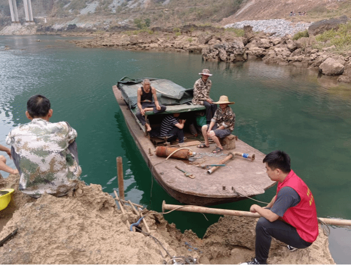 莫浩(右一)组织人员修缮水泵