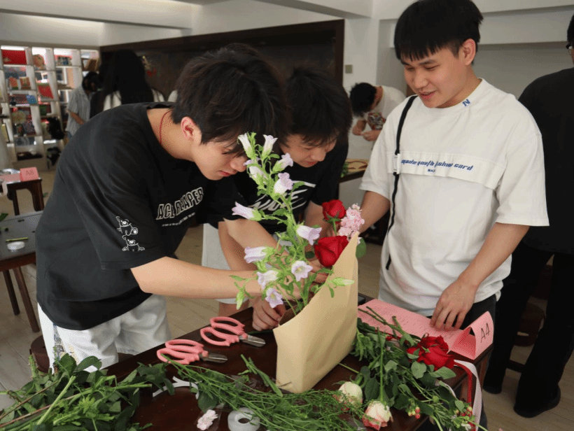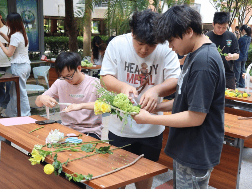 广西建院5月14日讯(管理工程学院 文/颜彦婷 李梦舅 图/宿管会 李晶晶)为丰富校园文化、提升学生艺术修养,5月14日下午,学校学生工作处宿管科与茶艺文化传习基地携手举办“花样青春,艺韵校园”花艺大赛,设置“夏日初立·万物生长”与“时光织锦·母爱如歌”两大主题,众多学生热情参与,校园内花艺创作氛围浓厚。