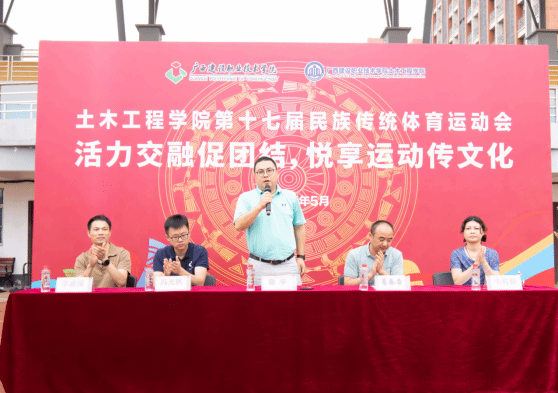 为传承与弘扬民族传统体育文化,丰富校园生活,增强学生体质,营造团结和谐的校园氛围,5月27日-6月10日,土木工程学院在学校田径场举行第十七届民族传统体育运动会。5月27日,学院副院长(主持工作)谢华、副院长葛春雷、团总支书记冯光帆以及教师代表、辅导员出席运动会开幕式,学院全体在校学生参加此次活动。