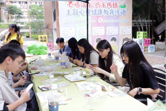 广西建院5月30日讯(图文/李婷婷 杨丽佳 邓晴 农荣昊 尹广斌 王斌)5月27日,首页“心晴端午 巧手传情”主题心理健康教育活动在心理中心和心灵驿站欢乐开启。共200余名同学沉浸在学校五个心理主题工坊中,用指尖创意释放压力、传递真情,为端午传统佳节注入“心”活力。