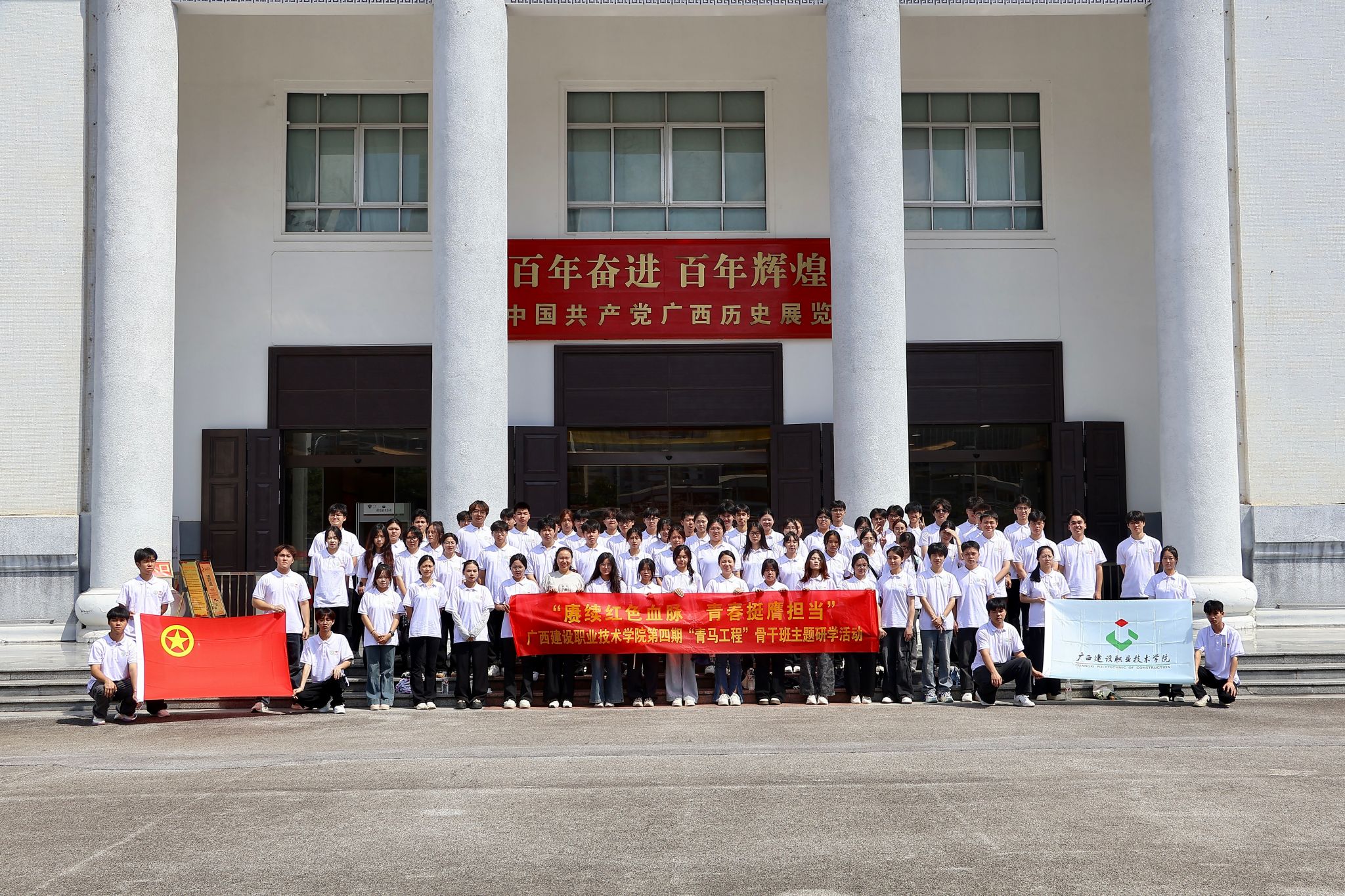 广西建院6月9日讯(团委 文/宋丽 冯丽芳 图/李强 李绍佳)为深化“青马工程”骨干班学员思想教育,6月7日,首页组织第四期学员开展“赓续红色血脉 青春挺膺担当”主题研学活动,通过多元场景实践,推动理想信念教育走深走实。