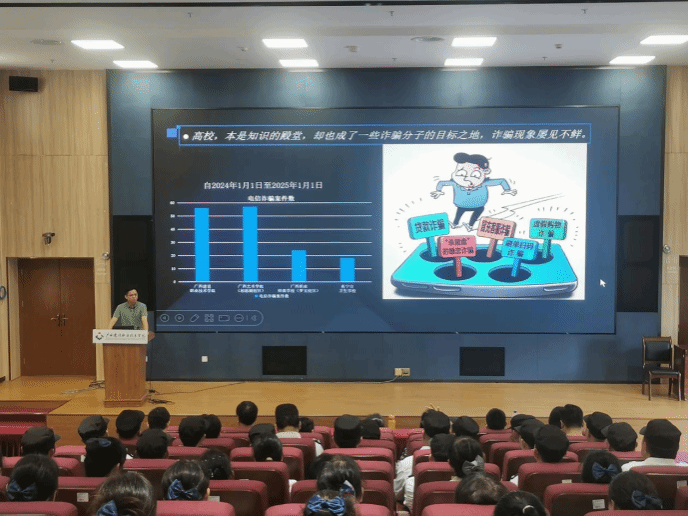 活动中,黄克华副处长以《安全教育,警钟长鸣》为题作专题讲座。他以生动详实的案例为引,围绕食品安全、人身安全、财产安全、交通安全、消防安全、网络诈骗等校园安全关键领域,深入浅出地剖析安全知识要点,同时结合校园实际,点明身边潜在安全隐患。讲座内容既强调防患未然的重要性,又彰显生命价值,让“生命重于泰山,安全高于一切”的理念深入人心。