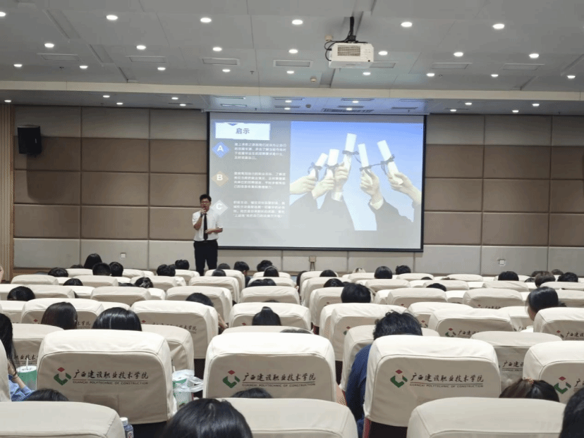 生涯课堂唤醒规划意识。基地创新开设“洞见生涯”职业体验游戏、职场真人图书馆等特色课程,以沉浸式体验引导学生树立生涯意识,系统提升生涯管理能力。在“洞见生涯”课堂上,学员们分组领取“职业生涯剧本”,在模拟的35年职场历程中推演人生轨迹,在角色代入中逐渐明晰“兴趣、能力、价值观”的匹配逻辑;职场真人图书馆则邀请广西建院专升本后考上硕士研究生的蒋林捷学长担任“真人图书”,与学员们探讨“如何规划学业与职业发展”“如何确定职业定位”等话题,为学员提供可学可鉴的成长路径。这些课程打破传统说教模式,让学生在互动体验中理解生涯管理的内涵,从“被动接受安排”转向“主动规划人生”,为职业发展筑牢意识根基。