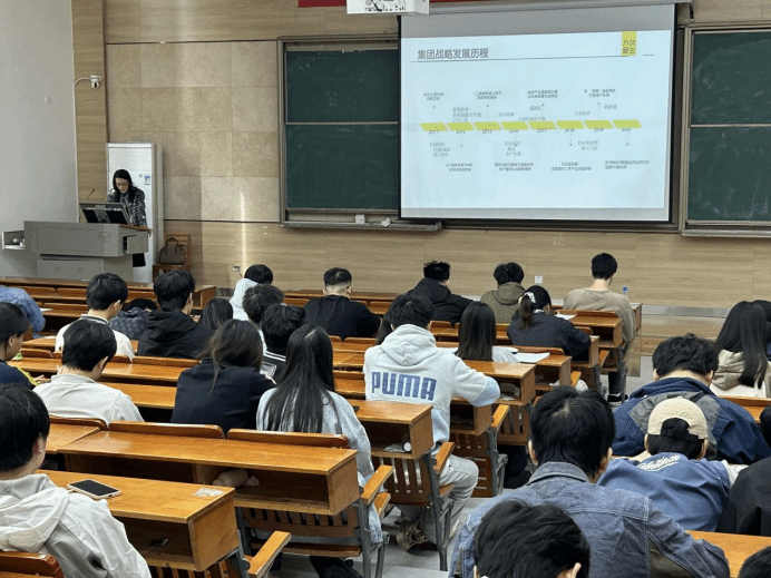 学生们认真聆听企业宣讲