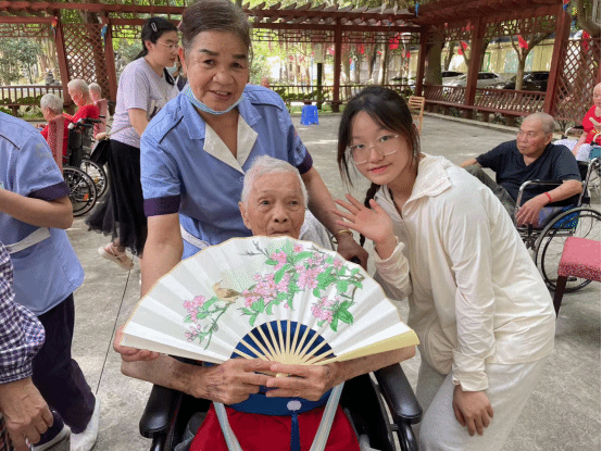 活动中,参与志愿服务活动的同学为养老院的老人送上爱心,将提前制作完成的40把折扇送给老人,驱散烈烈炎日的高温。活动当天正值金太阳老年公寓举办一月一次的生日会,志愿者们帮助现场工作人员做好生日会现场布置。生日会上,志愿者们与老人们促膝围坐,面对面亲切交谈,认真倾听老人们在养老院中的生活状况,共同奏唱《生日快乐》歌,为养老院增添了欢乐的气氛。