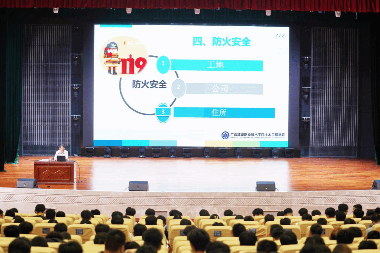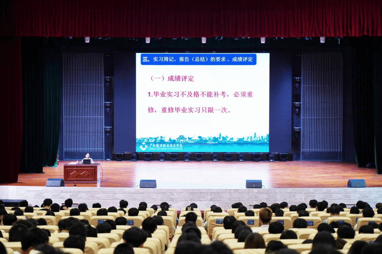 广西建院7月7日讯(土木工程学院 曾燕)为了进一步加强毕业生岗位实习过程管理和安全教育,明确岗位实习要求,确保毕业生岗位实习安全稳定,土木工程学院于7月5日下午在学校礼堂分批次召开了2024届毕业生岗位实习安全教育动员大会。学院领导班子成员,相关老师、全体2024届毕业生辅导员以及毕业生参加大会。大会由吴国堃老师主持。