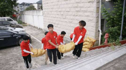 实践团成员搬运垃圾箱配件