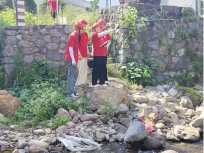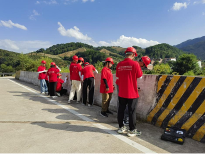 发挥检测优势,开展勘测服务。团队成员在林小雄、江鸿老师的指导下,先后赴红莲村架桥岭、白址村、南山冲、百亩脆蜜金桔产业道路等地开展了乡村路况及护栏检测工作。针对依山傍水,具备旅游景点开发潜质的架桥岭,团队重点结合当地喀斯特地貌,以及部分沿水公路未设置护栏、雨天易引发落石及山体滑坡等情况提出整改建议。在其他村屯公路路况检测中,团队成员分组对道路安全警示设置、护栏及边坡设置、路面平整度等情况进行了现场勘测。