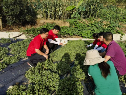 随后,团队前往金宝乡坪垌村仙人豆腐产业基地开展调研,在仙人草种植基地听农户介绍种植工艺,并听工人介绍了仙人豆腐的制作工艺。针对金桔、仙人豆腐两类产品因保质期短难以突破销售瓶颈的现状,团队成员们纷纷提出利用多媒体手段宣传、联系学校创意集市帮忙试销等建议,积极为当地产业发展出谋划策。