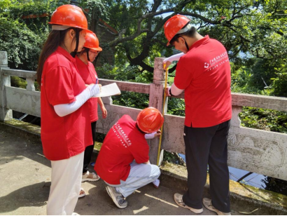 此外,团队还在白址村、红莲村、茶岩村实地检测了白址桥、红莲桥、茶岩桥三座桥梁性能。测量现场,有的队员负责现场拍照,有的队员负责丈量桥宽,有的负责做标记,有的负责检测混凝土强度,大家配合默契,协作良好。针对检测中发现的问题,团队进行了记录与原因分析,并出具了详细的检测报告,为当地村委启动美丽农村建设提质增优工程提供了积极帮助。