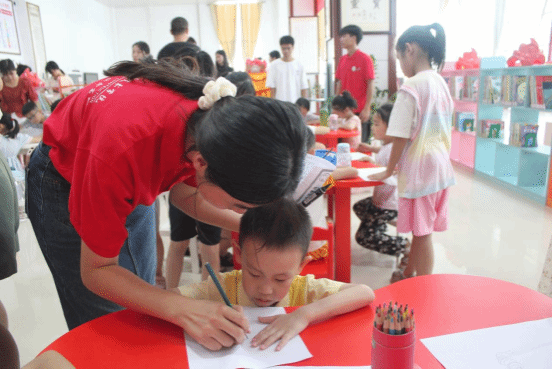 观看醒狮形象,绘画醒狮风采。7月13日上午,30余名小朋友在陆川县图书馆参与活动。服务团成员向现场的小朋友们讲解龙狮文化,引导他们与醒狮互动,近距离观察醒狮的形象与造型,带领小朋友们利用手中的画笔将所看到的醒狮形象画在纸上。