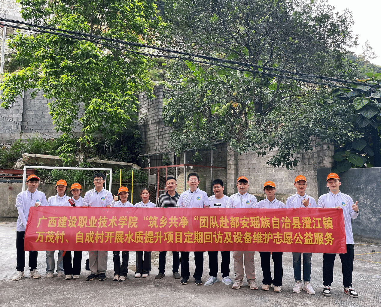 广西建院8月25日讯 (设备与环境学院 文/张顺波 徐静 黄宇图/黄莹静 韦思钰)为更好地服务乡村振兴工作,助推美丽宜居乡村建设,近日,广西建院设备与环境学院“筑乡共净——乡村水质提升工程践行者”乡村振兴促进团一行10名学生志愿者在田海涛、徐静、黄宇三位指导老师的带领下,前往都安县澄江镇万茂村、自成村,龙湾乡群乐村等地,开展为期7天的水质提升项目定期回访与志愿公益服务社会实践活动。