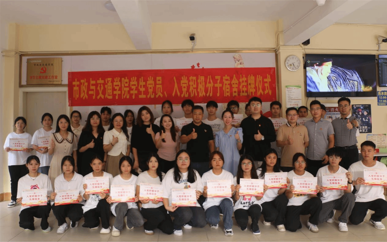 随后,市政与交通学院的党员教师们为现场学生党员授予党员、入党积极分子先锋宿舍标牌。同学们表示,将在今后的学习生活中主动亮明身份,严格要求自己,团结同学,发挥先锋模范作用,营造和谐宿舍。