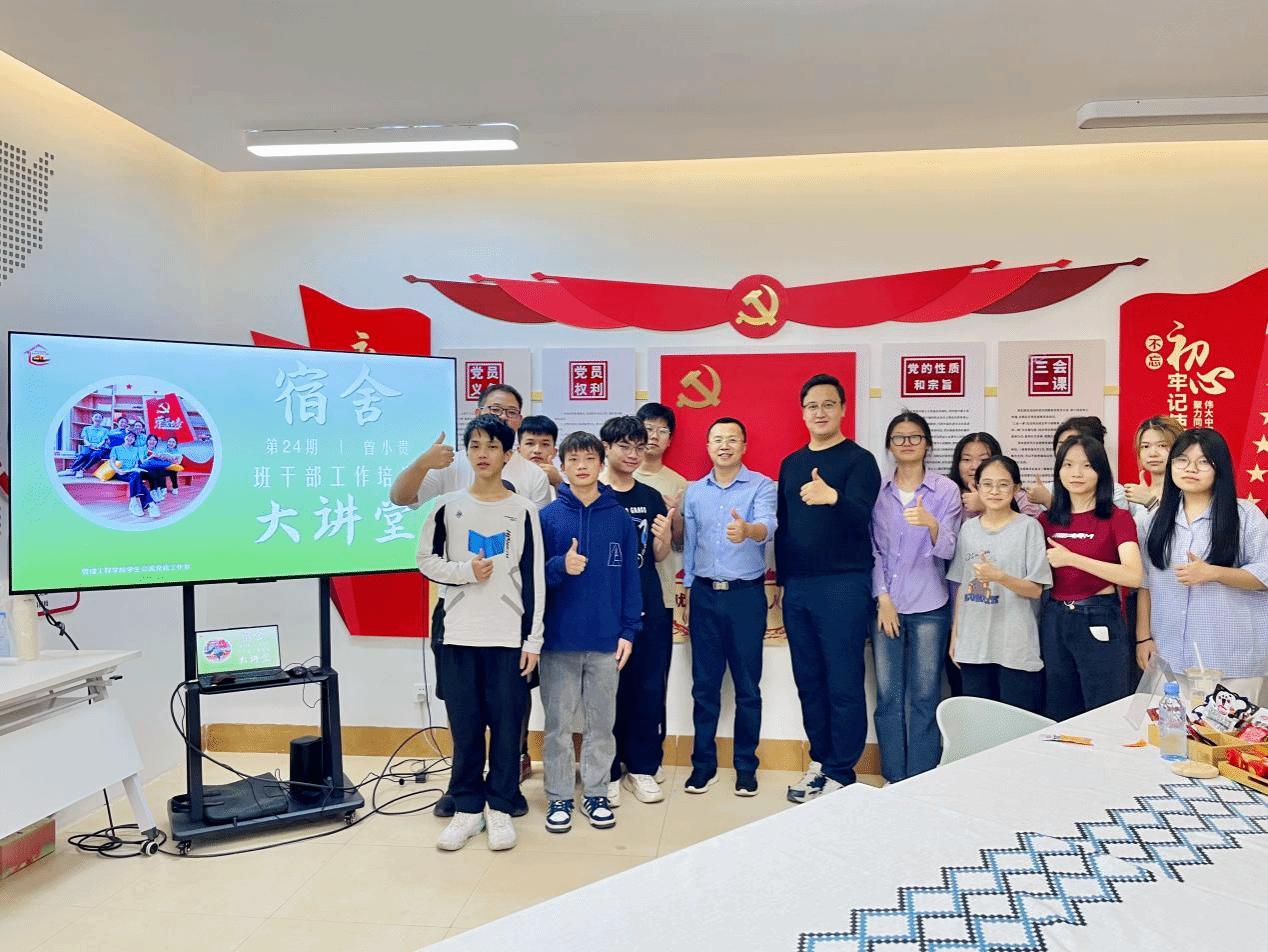 据悉,宿舍大讲堂是管理工程学院“红船精神”学生公寓党建工作室常态化开展的学生活动精品项目之一,该栏目充分借鉴第一课堂教学育人体系,将思政课堂的授课地点开到了学生社区,实现课堂教学和宿舍育人的有效融合。